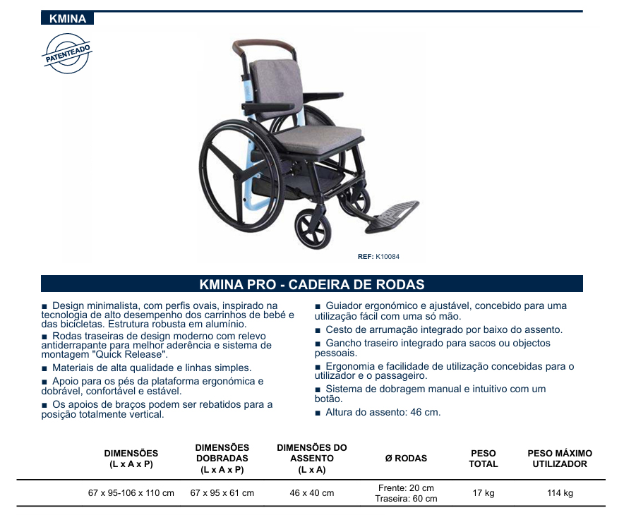Cadeira de rodas KMINA PRO alumínio K10084, azul