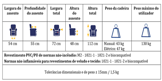 A Poltrona INNOV’SA NO STRESS manual é muito confortável, multiposicional, e facilita transferências graças aos seus apoios de braços amovíveis. Certifique-se que existe distância suficiente (aprox. 60 cm) na parte de trás da cadeira para evitar o contacto com a parede quando esta estiver na posição “Relaxar” (deitada). Certifique-se de que a localização da cadeira é uma superfície plana sem inclinações para assegurar que a cadeira é estável no chão para que não possa escorregar.